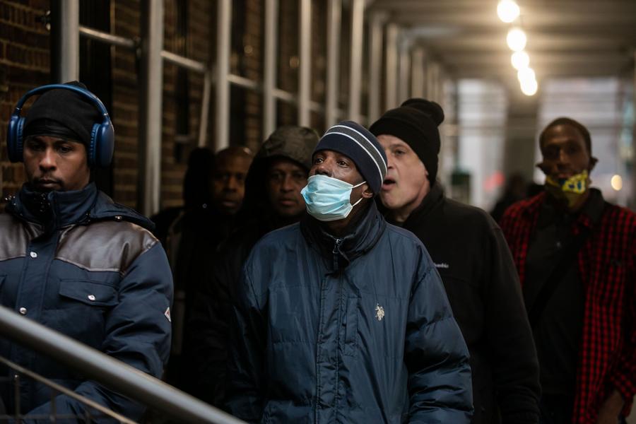 2023年12月24日,在美國紐約,民眾(zhong) 在“紐約公共食品儲(chu) 藏室”排隊領取免費食品。新華社發(郭克攝)