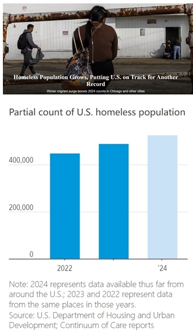 日前,美國《華爾街日報》對全美超過250個(ge) 覆蓋城市和農(nong) 村地區的無家可歸者服務組織的數據進行分析後發現,上述地區無家可歸者的數量較去年同期增加了約10%。這一趨勢表明,美國今年無家可歸者人數可能會(hui) 超過2023年估計的65.3萬(wan) 人,這是自2007年有記錄以來的最高數字。