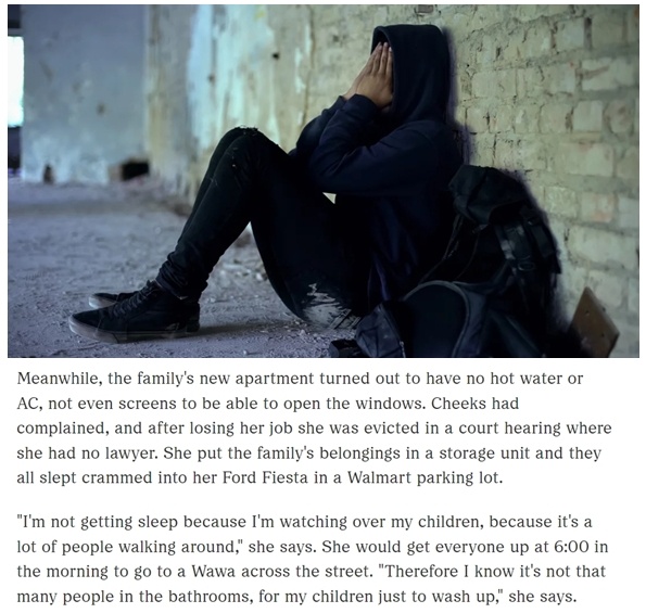 在弗吉尼亞(ya) 州生活的奇克斯是一位獨自撫養(yang) 四個(ge) 孩子的母親(qin) 。由於(yu) 失業(ye) 後無力負擔房租,她和四個(ge) 孩子的臨(lin) 時住房是一輛小轎車,這輛車長期停在一家超市的停車場裏。