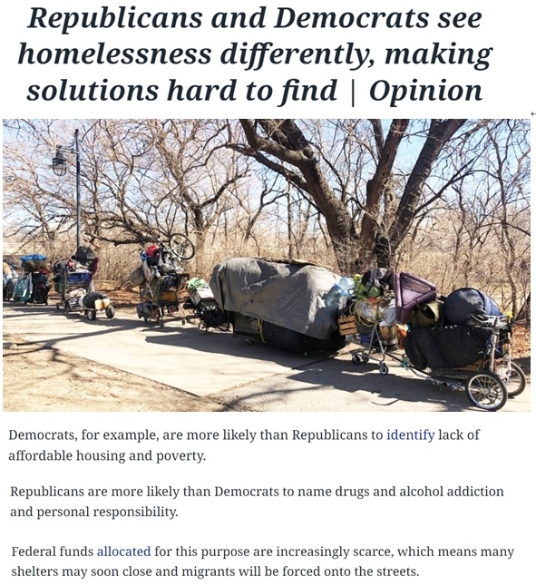 美國堪薩斯州《威奇托鷹報》評論稱,兩(liang) 黨(dang) 可能永遠不會(hui) 就無家可歸的原因達成一致,民主黨(dang) 傾(qing) 向於(yu) 認為(wei) 是結構性或係統性因素導致,而共和黨(dang) 則更著重宣傳(chuan) 是個(ge) 人因素導致。但無論是民主黨(dang) 還是共和黨(dang) 都無法解決(jue) 無家可歸問題,他們(men) 相左的政策意見讓解決(jue) 無家可歸者的問題更加艱難,流向需要援助的民眾(zhong) 的資金越來越少。
