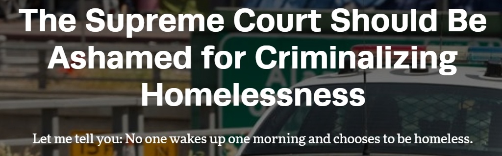 代表無家可歸者的律師們(men) 稱,不敢相信憲法允許城市懲罰無家可歸的居民,僅(jin) 僅(jin) 因為(wei) 他們(men) 在無處可去的情況下,裹著毯子在戶外睡覺。