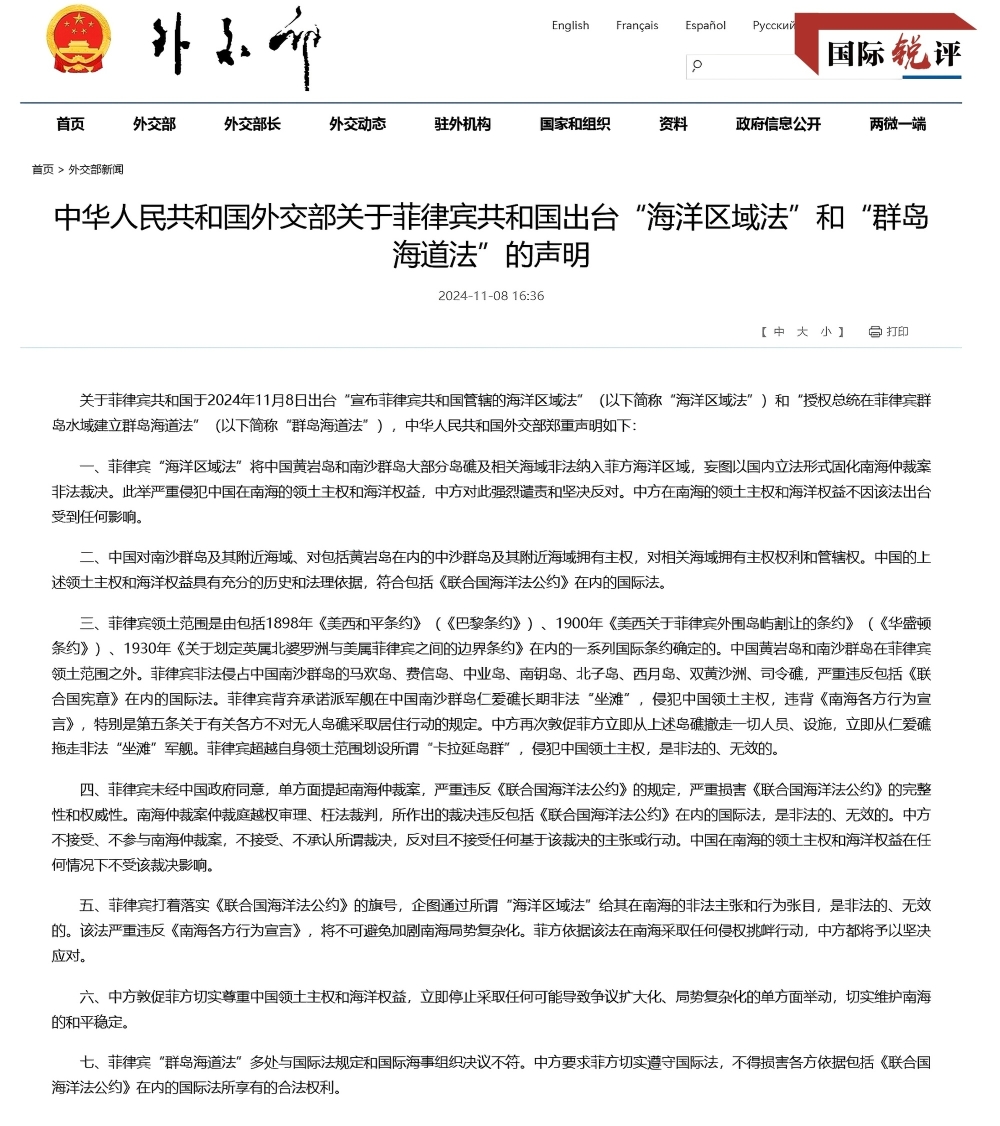 菲方算盤打得再精,也難以如願。原因很簡單:這兩(liang) 項所謂法案,嚴(yan) 重侵犯中國在南海的領土主權和海洋權益,違反了《南海各方行為(wei) 宣言》強調的“對話協商解決(jue) 分歧”的重要原則,破壞了現有國際法規則體(ti) 係,是非法的、無效的。