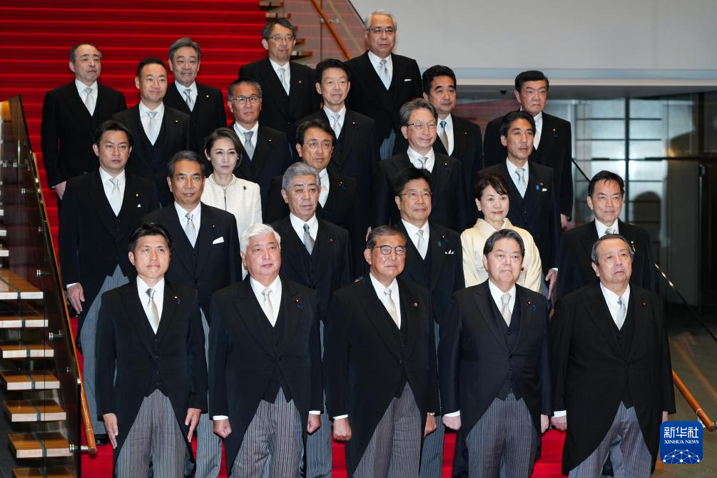 11月11日,日本首相石破茂(前排中)在日本東(dong) 京的首相官邸率閣僚合影。新華社記者 張笑宇 攝