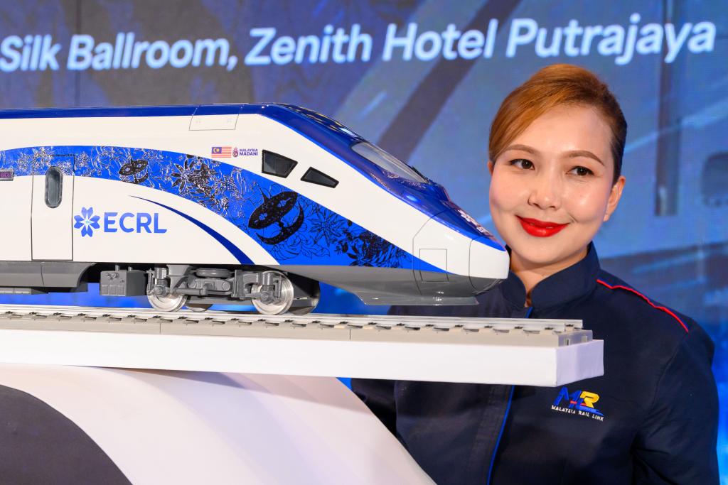 12月18日,在馬來西亞(ya) 普特拉賈亞(ya) ,模特與(yu) 新的動車組模型合影。新華社發(張紋綜攝)