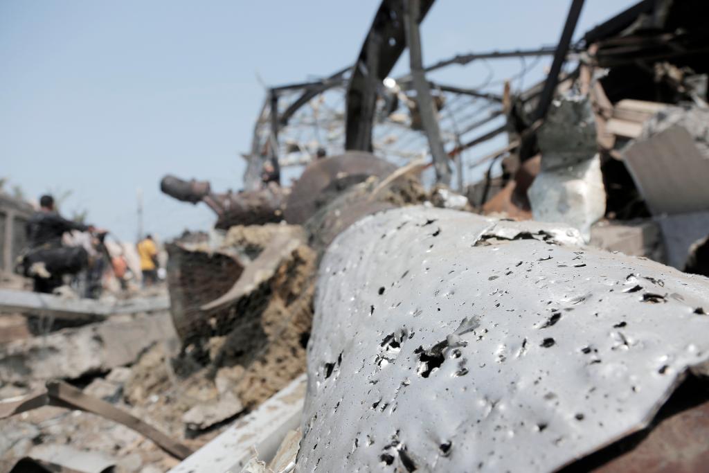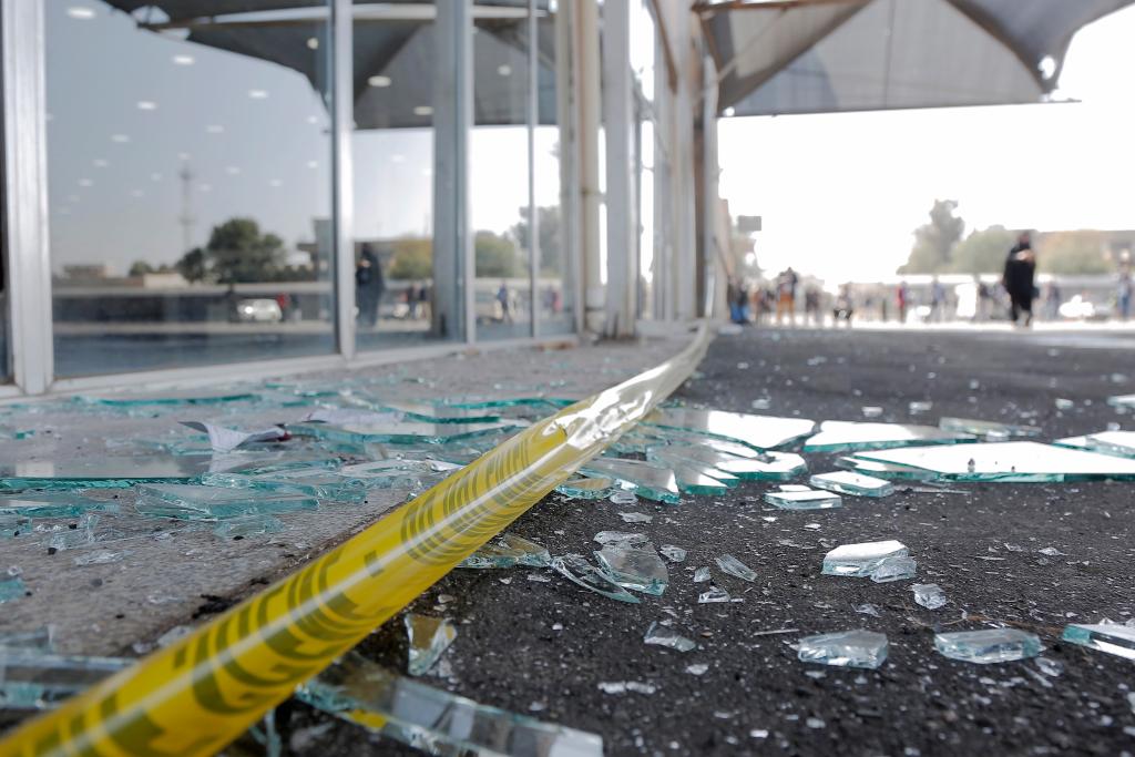 這是12月27日在也門薩那國際機場拍攝的地麵上破碎的玻璃。新華社發(穆罕默德·穆罕默德攝)