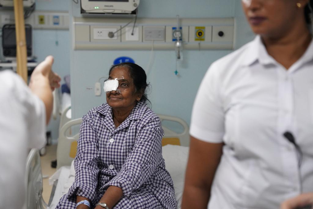 這是2024年12月24日在斯裏蘭(lan) 卡科倫(lun) 坡港停靠的中國海軍(jun) “和平方舟”號醫院船上拍攝的剛進行完白內(nei) 障手術的本地患者。(新華社記者伍嶽攝)
