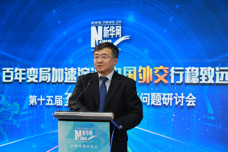 1月2日,新華網第十五屆“縱論天下”國際問題研討會(hui) 在北京新華網總部舉(ju) 辦。圖為(wei) 中國社會(hui) 科學院俄羅斯東(dong) 歐中亞(ya) 研究所所長孫壯誌在進行上半場主題演講。新華網 楊霽昕 攝