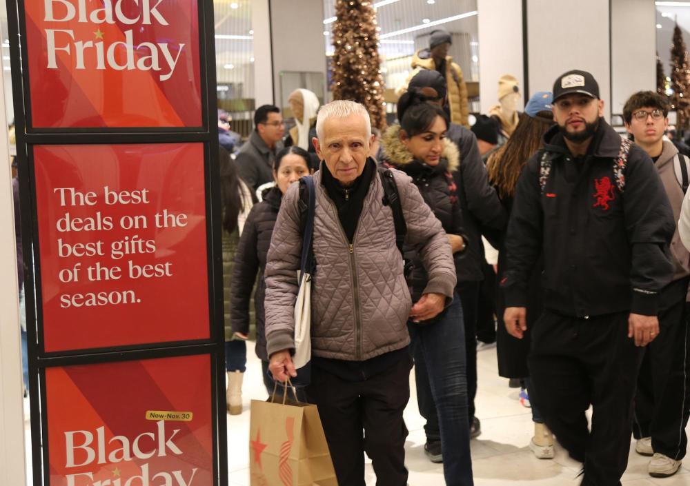 2024年11月29日,在美國紐約曼哈頓島的一家商場內(nei) ,人們(men) 經過“黑色星期五”促銷廣告牌。新華社記者劉亞(ya) 南攝