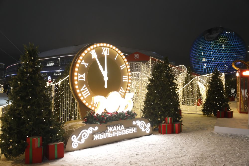 這是2024年12月18日在哈薩克斯坦首都阿斯塔納拍攝的迎接2025年的燈飾。新華社發(奧斯帕諾夫攝)