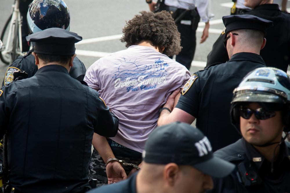 2023年5月6日,在美國紐約,警察帶走抗議者。新華社發(郭克攝)