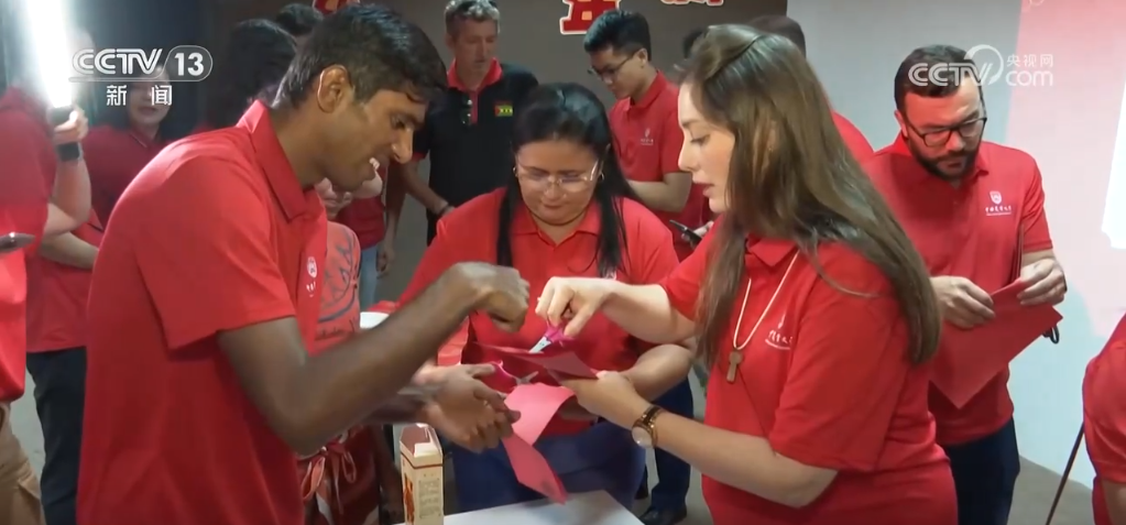 當地時間1月28日一大早,也就是北京時間的除夕夜,巴西東(dong) 北部小鎮阿波迪打破了往日的平靜。很多當地民眾(zhong) 知道,他們(men) 的中國朋友即將舉(ju) 行春節慶祝活動,因而早早地來到了活動現場。在現場,中國農(nong) 業(ye) 技術人員不僅(jin) 貼上了春聯、掛上了福字,還邀請當地民眾(zhong) 一起看春晚、包餃子、剪窗花、寫(xie) 春聯,這也是很多當地民眾(zhong) 第一次參加春節慶祝活動。