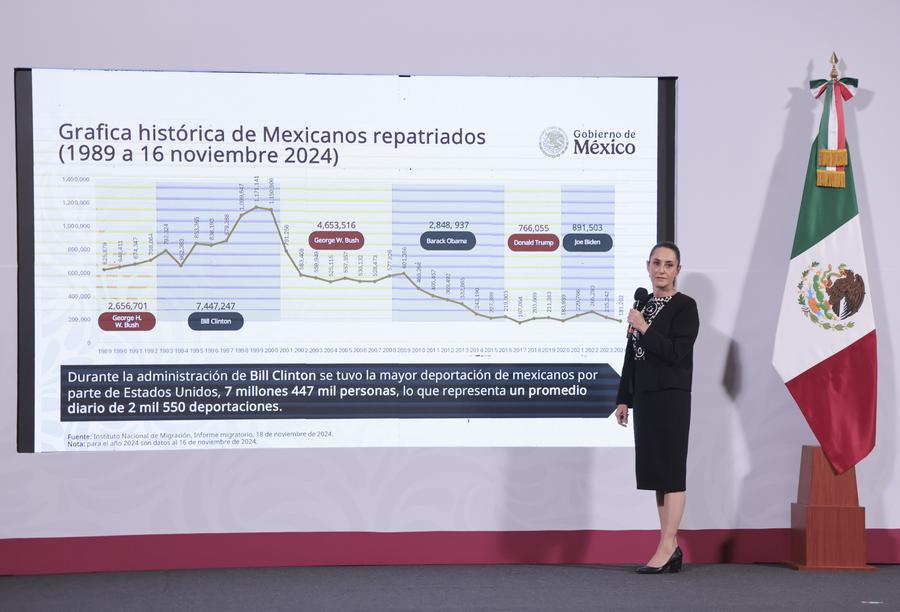 2025年1月21日,墨西哥總統辛鮑姆在首都墨西哥城舉(ju) 行的例行新聞發布會(hui) 上講話。新華社發(墨西哥總統府供圖)
