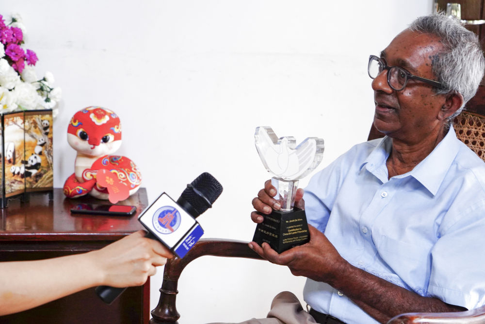 1月30日,在斯裏蘭(lan) 卡首都科倫(lun) 坡,斯裏蘭(lan) 卡中國協會(hui) 主席吉尼斯·德席爾瓦接受新華社記者采訪。