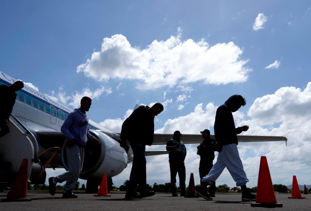 快中午時,又一架載著被美國遣返移民的航班降落。