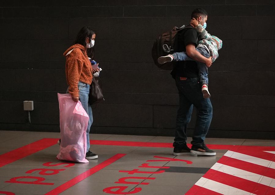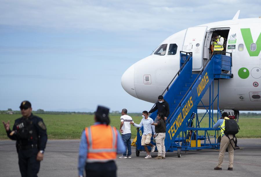 2025年2月13日,在洪都拉斯拉利馬市,被遣返移民抵達機場。新華社發 戴維 攝