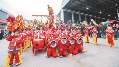 2月12日,在位於(yu) 浙江杭州建德市更樓街道的建德新農(nong) 都農(nong) 產(chan) 品批發市場內(nei) ,一場特色元宵市集主題活動助力消費市場升溫。2025年1月正式投入使用的建德新農(nong) 都農(nong) 產(chan) 品批發市場建築麵積8.29萬(wan) 平方米,集蔬菜、水果、肉類、水產(chan) 品等批發零售於(yu) 一體(ti) ,發揮保障商品供應和穩定區域物價(jia) 作用。圖為(wei) 元宵市集上,小朋友表演“萌娃舞龍”。