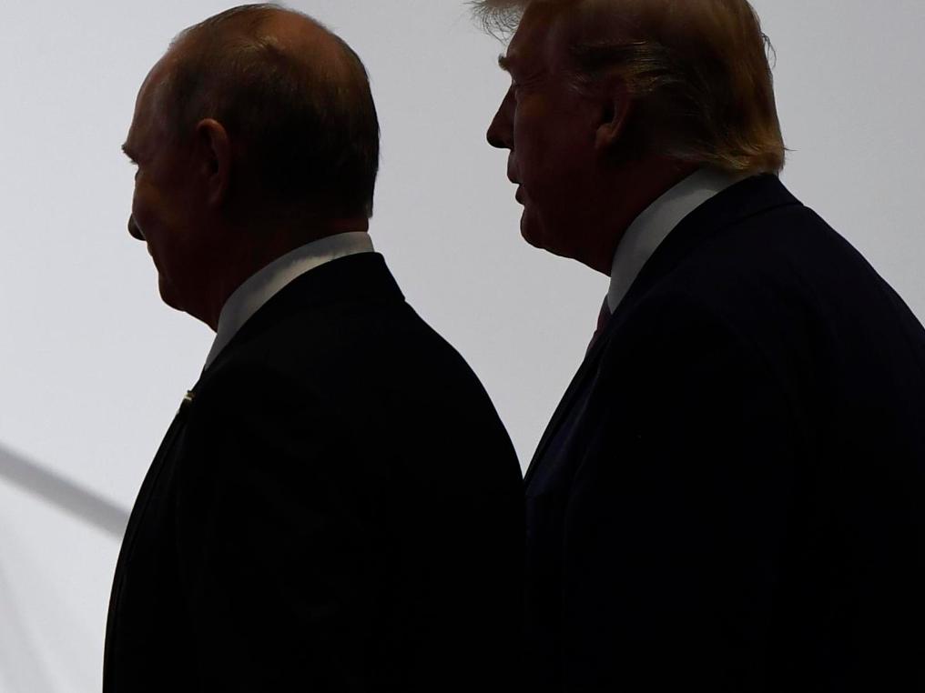 這是2019年6月28日在日本大阪拍攝的參加G20峰會(hui) 的美國總統特朗普(右)和俄羅斯總統普京。新華社/美聯