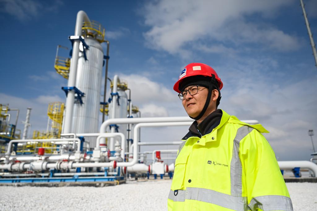 2月12日,一名中國工程師在土耳其阿克薩拉伊省的圖茲(zi) 湖地下天然氣儲(chu) 庫擴建項目地麵場站巡查。新華社記者劉磊攝