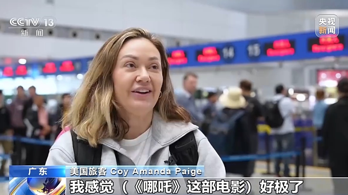 美國旅客 Coy Amanda Paige:我來自美國,我感覺《哪吒》這部電影好極了,我想讓我女兒(er) 看,我想她會(hui) 喜歡的。