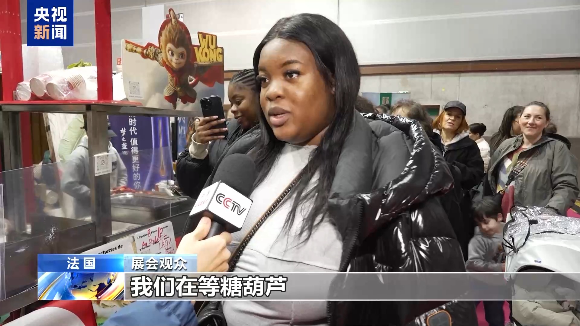 展會(hui) 觀眾(zhong) :我們(men) 在等糖葫蘆,我們(men) 是在社交媒體(ti) TikTok上看到的,想嚐一嚐,所以我們(men) 就來試試。我們(men) 從(cong) 來沒吃過糖葫蘆,很多味道融合在一起,中國是一個(ge) 很美麗(li) 的國家,人們(men) 很友善,很有禮貌。