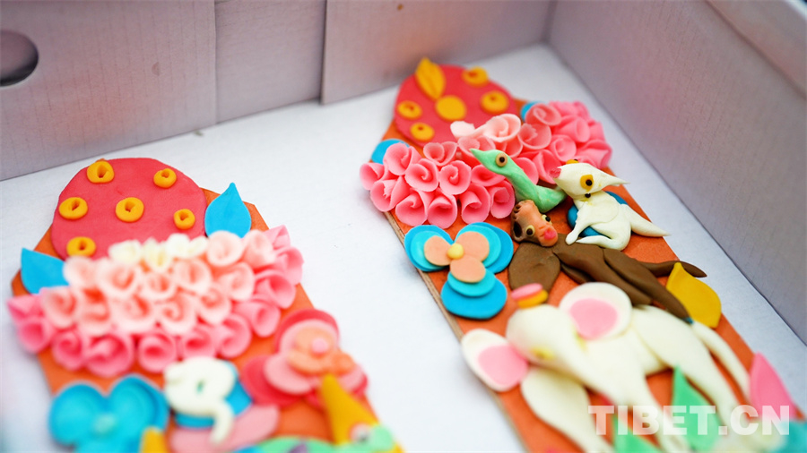 在拉薩市最大的年貨市場八廓商城的東(dong) 側(ce) ,售賣酥油花的攤位整齊排列。經營者大多是50歲以上的中年人,他們(men) 有豐(feng) 富的手工酥油花製作經驗,主要以家庭作坊的形式製作售賣,幾個(ge) 隨手可拎起的鞋盒就是他們(men) 的“商鋪”。和氣四瑞、長壽六寶、吉祥八寶,經營者們(men) 用自己的巧手捏製出不同的圖案,將家庭和睦、健康長壽、吉祥如意的寓意帶給一戶又一戶人家。