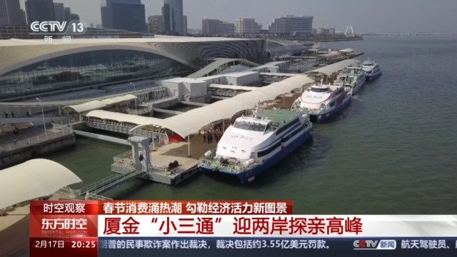作為(wei) 兩(liang) 岸最大的海上客運航線,廈金航線每天有16個(ge) 往返船班,航程隻要半個(ge) 小時,成為(wei) 台灣同胞往返兩(liang) 岸的“黃金通道”。春節假期以來,廈金“小三通”航線的旅客量穩步增長。