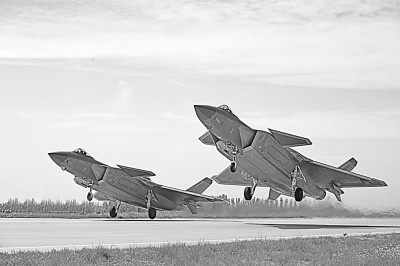 空軍(jun) “王海大隊”飛行員駕駛殲-20戰機編隊起飛。王鴻飛攝/光明圖片