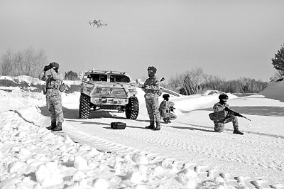 陸軍(jun) 某旅三角山邊防連執勤組外出巡邏時使用無人機偵(zhen) 察。新華社發