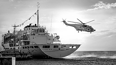 中國海軍(jun) “和平方舟”號醫院船靠泊所羅門群島霍尼亞(ya) 拉港期間,艦載醫療救護直升機開展巡診服務。新華社發