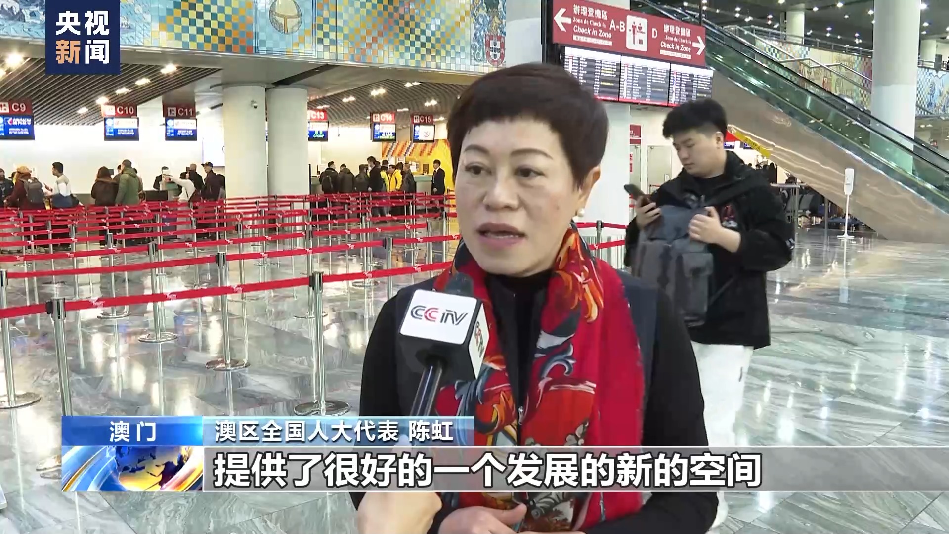 澳區全國人大代表 陳虹:國家給了澳門很好的發展的機遇跟平台,提供了很好的一個(ge) 發展的新的空間,特別是深合區,粵港澳大灣區,為(wei) 澳門居民更好地融入國家發展大局提供了這麽(me) 好的空間。