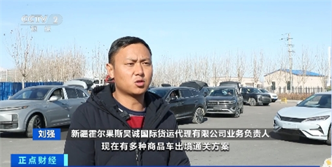 新疆霍爾果斯昊誠國際貨運代理有限公司業(ye) 務負責人 劉強:現在有多種商品車出境通關(guan) 方案可供選擇,包括本地報關(guan) 、一體(ti) 化申報、直通轉關(guan) 等多種模式。今年我們(men) 公司共出口商品車1500餘(yu) 輛,貿易額超3億(yi) 元。