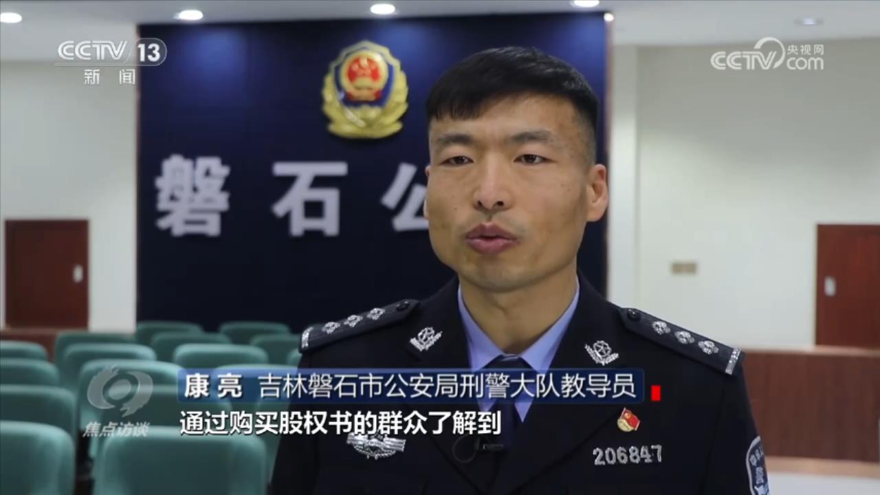 吉林磐石市公安局刑警大隊教導員康亮介紹,通過購買(mai) 股權書(shu) 的群眾(zhong) 了解到,這是一個(ge) 投資29.9元就能獲得110萬(wan) 元回報的項目。