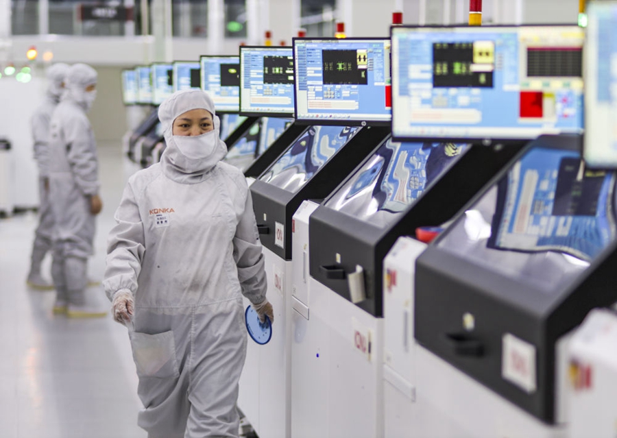 Micro LED被譽為(wei) 終極顯示技術,重慶康佳光電科技有限公司瞄準這一產(chan) 業(ye) 前沿,集聚200多名研發人員持續開展技術攻關(guan) ,推出了一係列未來顯示產(chan) 品矩陣。“市場需求持續攀升,剛開年新訂單就排起了隊。”公司相關(guan) 負責人樊娜說。
