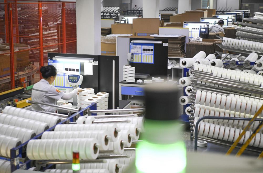 工人在華峰重慶氨綸公司包裝車間作業(ye) (2023年10月16日攝)。新華社記者 王全超 攝