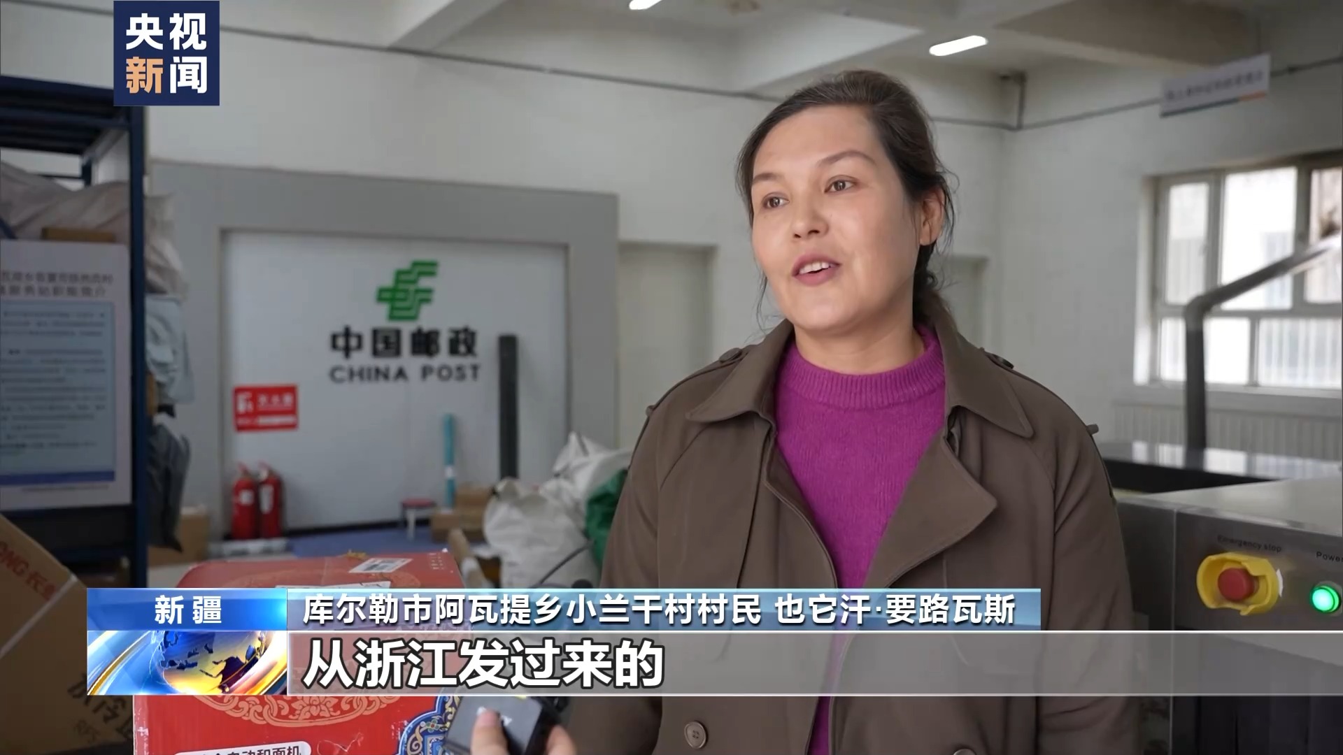 庫爾勒市阿瓦提鄉(xiang) 小蘭(lan) 幹村村民 也它汗·要路瓦斯:我在網上買(mai) 了一個(ge) 和麵機,從(cong) 浙江發過來的。過去拿快遞隻能到鄉(xiang) 裏,現在直接到家門口,當天我就拿到手。