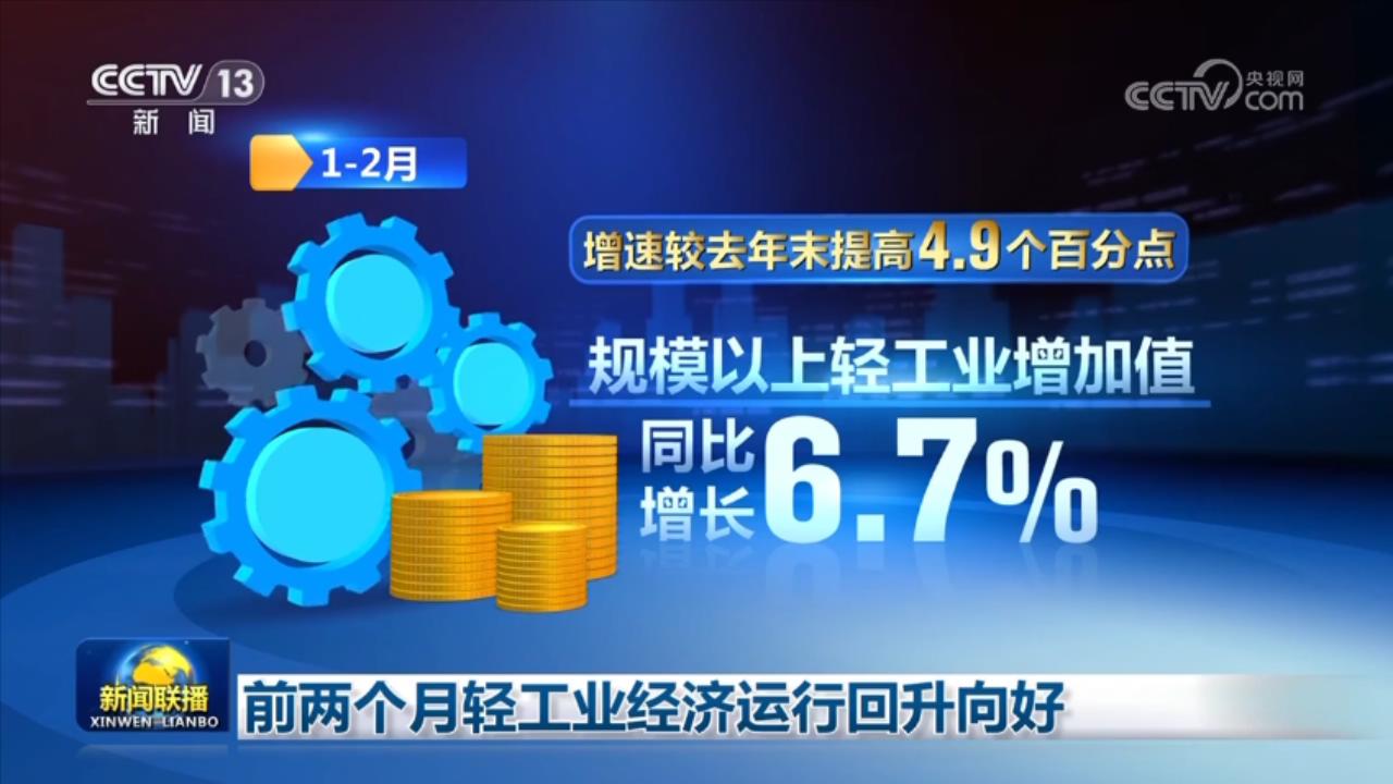 輕工業(ye) 生產(chan) 呈現出較快增長態勢。前兩(liang) 個(ge) 月,規模以上輕工業(ye) 增加值同比增長6.7%,增速較去年末提高4.9個(ge) 百分點。其中,造紙、塑料製品、家用電器、家具等製造業(ye) 增加值增速超過10%。