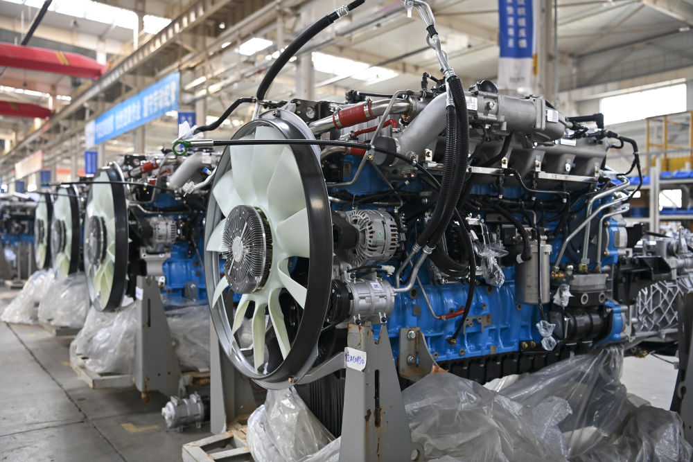 這是在位於(yu) 山西省晉中市榆次區的山西新能源汽車工業(ye) 有限公司(吉利晉中基地)拍攝的甲醇發動機(4月1日攝)。新華社記者 楊晨光 攝