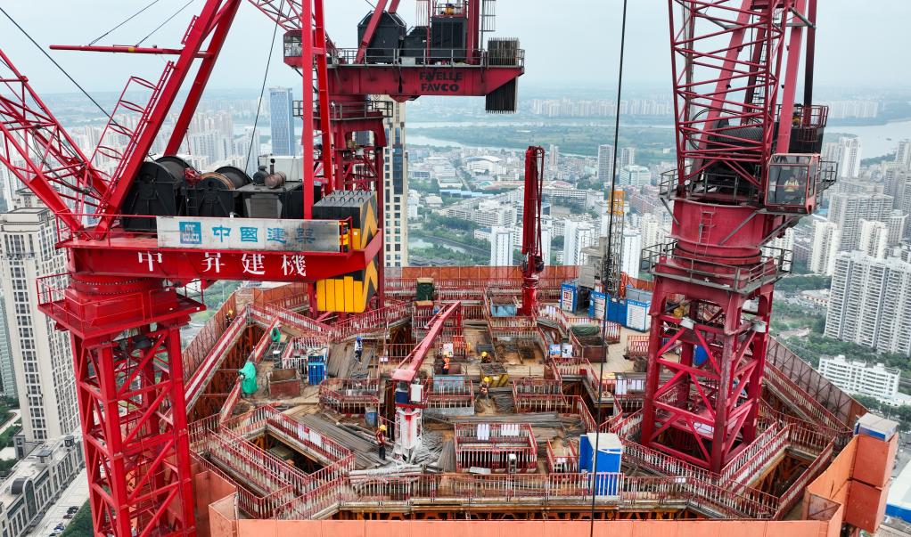 4月12日,工人在海口市海南中心項目施工作業(ye) (無人機照片)。新華社記者 楊冠宇 攝