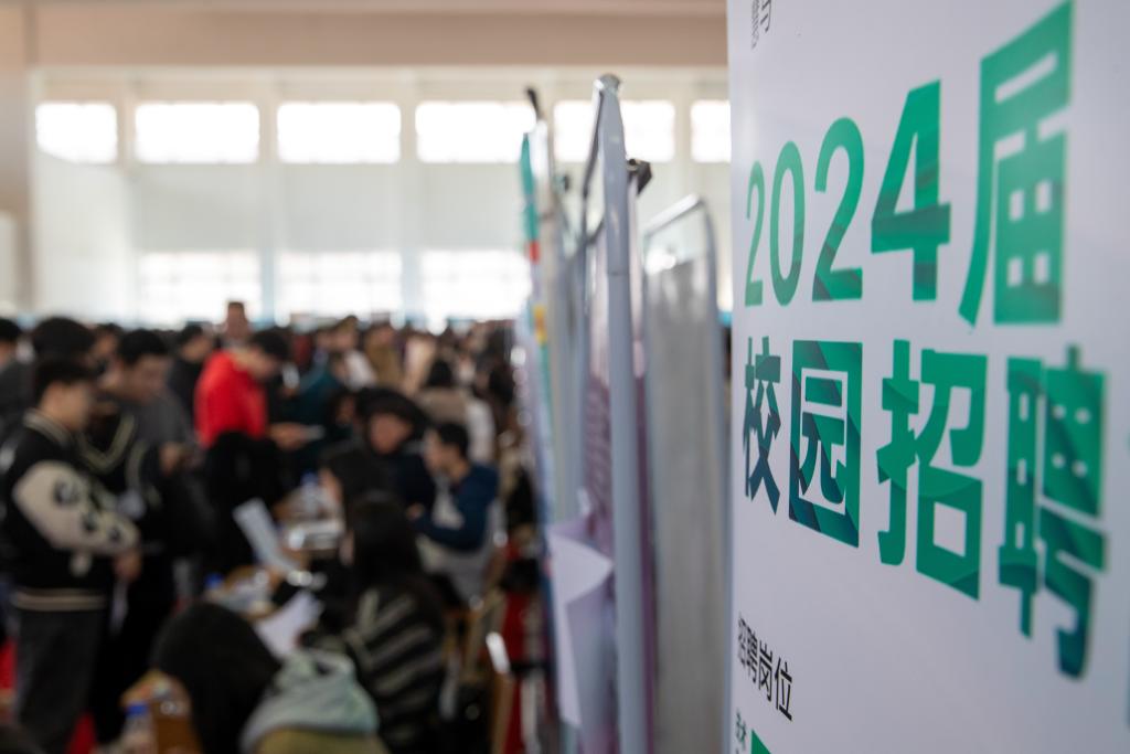 4月9日,求職者在聯合招聘會(hui) 現場與(yu) 招聘方代表溝通交流。新華社記者 張濤 攝