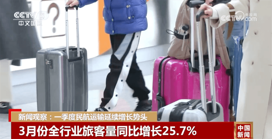 據中國民航局消息,2024年一季度,民航運輸生產(chan) 開局良好,旅客運輸量和貨郵運輸量均創下曆年一季度最高值。全行業(ye) 共完成運輸總周轉量同比增長45.6%,較2019年同期增長12.9%。