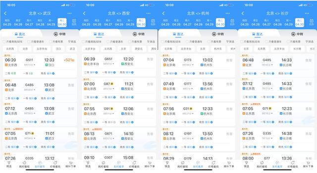 從(cong) 節前預訂情況看,4月30日北京出發,前往武漢、西安、杭州、長沙等方向車票極為(wei) 緊俏。截至16日16時,上述方向車票大麵積售罄,僅(jin) 清晨6時許出發車次尚存餘(yu) 票。