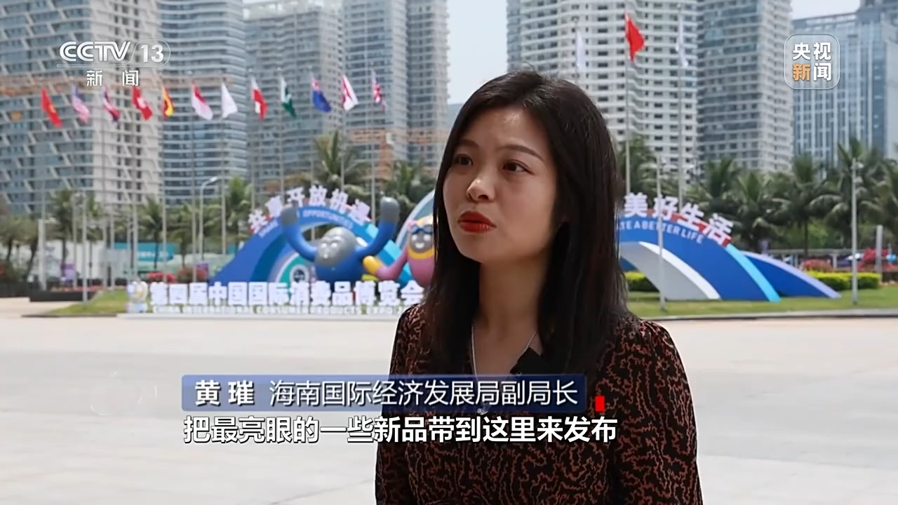 海南國際經濟發展局副局長 黃璀:我們(men) 希望更多全球品牌把最亮眼的一些新品帶到這裏來發布,更好跟中國消費市場進行對接。當然我們(men) 也希望中國的消費精品,通過消博會(hui) 新品發布舞台,讓全世界看到,通過海南自貿港、通過消博會(hui) 這個(ge) 平台走向全球。