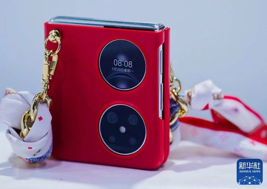 圖為(wei) 華為(wei) 展台展出的新款折疊手機