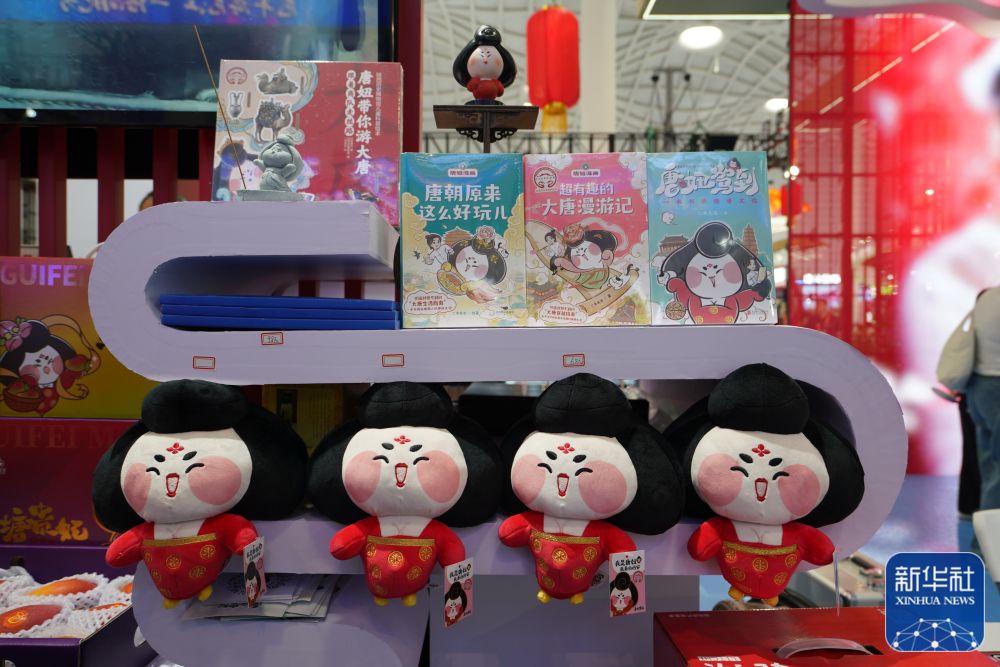 國貨特色潮品展區陝西展台展示了“唐妞”係列文創產(chan) 品。“唐妞”的卡通形象取材於(yu) 陝西曆史博物館館藏文物——唐代彩繪仕女俑。新華社記者楊冠宇 攝