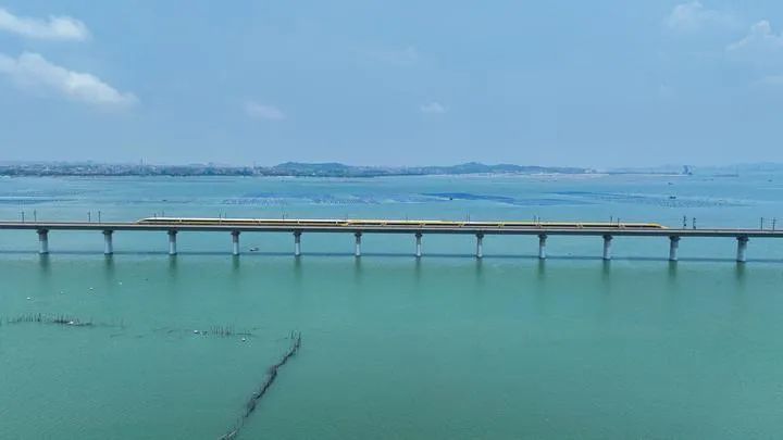 2023年6月28日,CR450動車組試驗列車在湄洲灣跨海大橋交會(hui) 運行,單列最高運行時速達到453公裏。(鐵科院集團公司供圖)