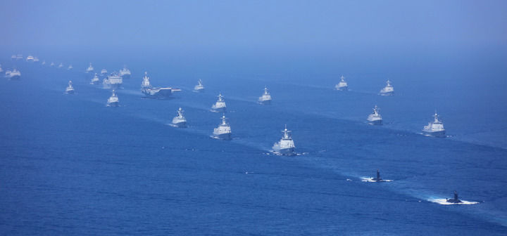 2018年4月12日,中央軍(jun) 委在南海海域隆重舉(ju) 行海上閱兵。這是航母打擊作戰群等接受檢閱。新華社發(莫小亮 攝)