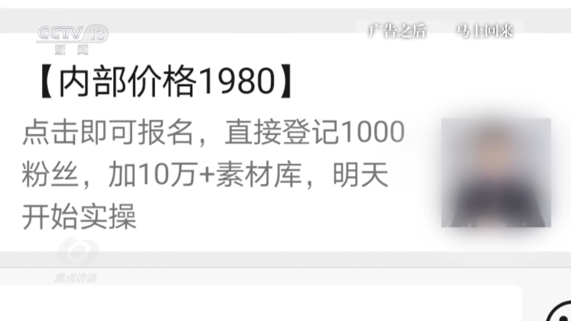 上海市公安局奉賢公安分局刑偵(zhen) 支隊副支隊長 張文韜:這些所謂的培訓課程都是團夥(huo) 成員從(cong) 互聯網上東(dong) 拚西抄後自行錄製的視頻,所謂的套餐漲粉,也隻是公司購買(mai) 的僵屍粉,根本不會(hui) 產(chan) 生購買(mai) 成交量。