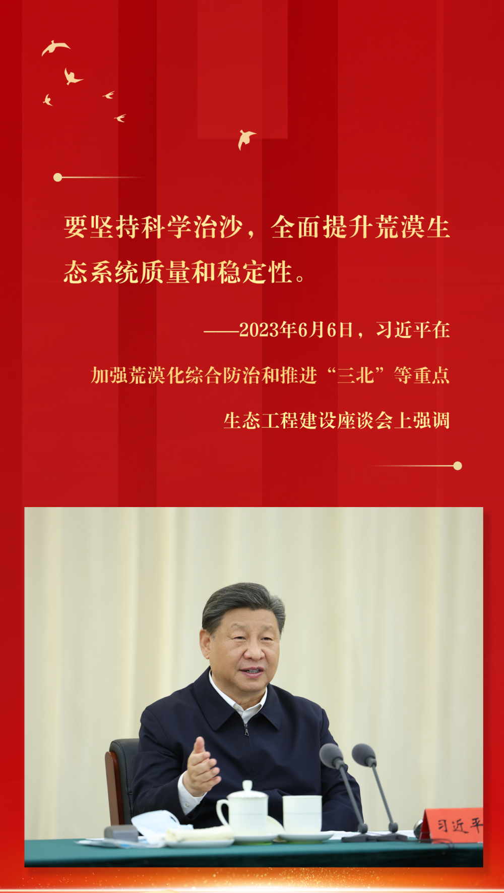 2023年6月5日至6日,習(xi) 近平在內(nei) 蒙古巴彥淖爾考察,並主持召開加強荒漠化綜合防治和推進“三北”等重點生態工程建設座談會(hui) 。這是6日上午,習(xi) 近平在臨(lin) 河區國營新華林場考察。
