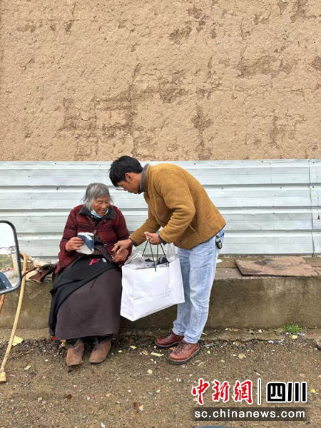 紮西奪爾登為(wei) 困難群眾(zhong) 送去冬季禦寒物資。阿壩州文明辦供圖