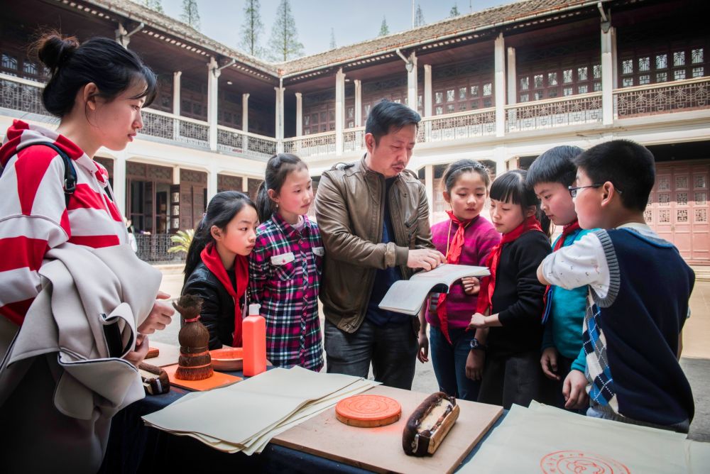 鄭宗男向學生介紹雕版印刷。(湖州市南潯區委宣傳(chuan) 部供圖)